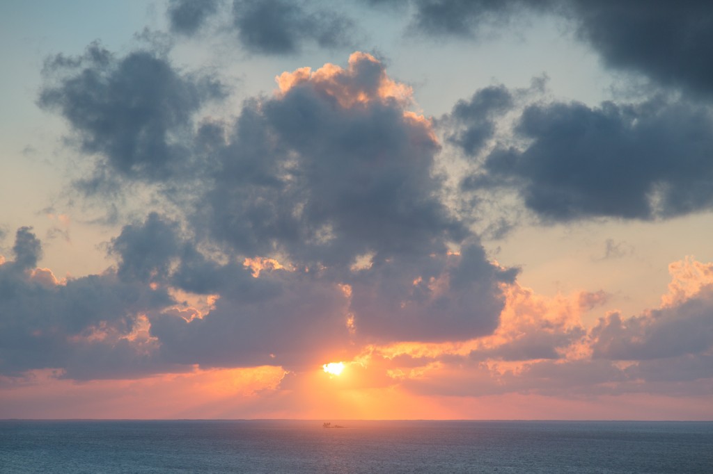 We woke up to another beautiful morning complete with a sunrise and a nice ocean breeze. We also had neighbors that morning, the Royal Caribbean Mariner of the Seas, also from Galveston on our same island route. It’s a really beautiful ship, especially on a backdrop of fluffy white clouds, blue sky, and turquoise waters.