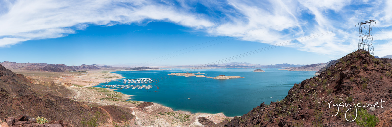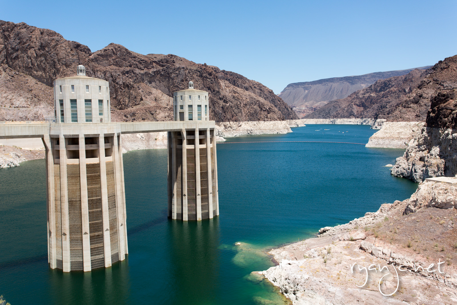 The dam holds back Lake Mead, the largest reservoir in the United States in maximum water capacity and serves all of the electricity in the local valley area and beyond (including a large part of Southern California). Unfortunately due to the more than a decade of draughts, the lake has dropped over 100 feet and is sitting critically low. From the overlook, it was quite evident how much Lake Mead had shrunken.