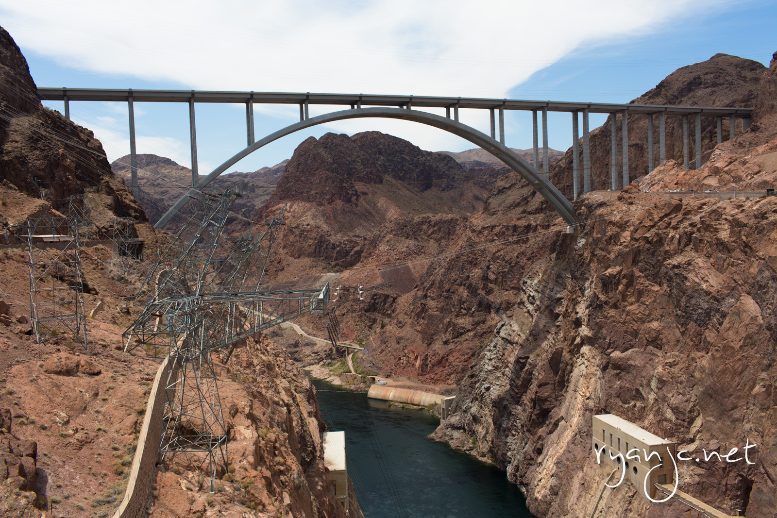 Across the way from the Hoover Dam, is the relatively new Mike O’Callaghan-Pat Tillman Memorial Bridge that was opened in 2010 for traffic and security concerns. This way, all passing traffic would not need to drive across the dam (a security nightmare I can imagine in this day in age). This too is equally as marvelous in its design and ability to span such a distance and bear the weight of US 93.